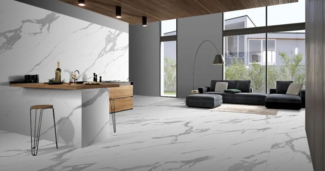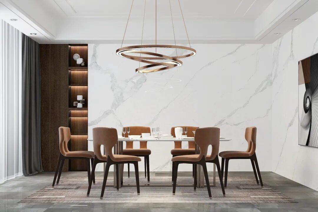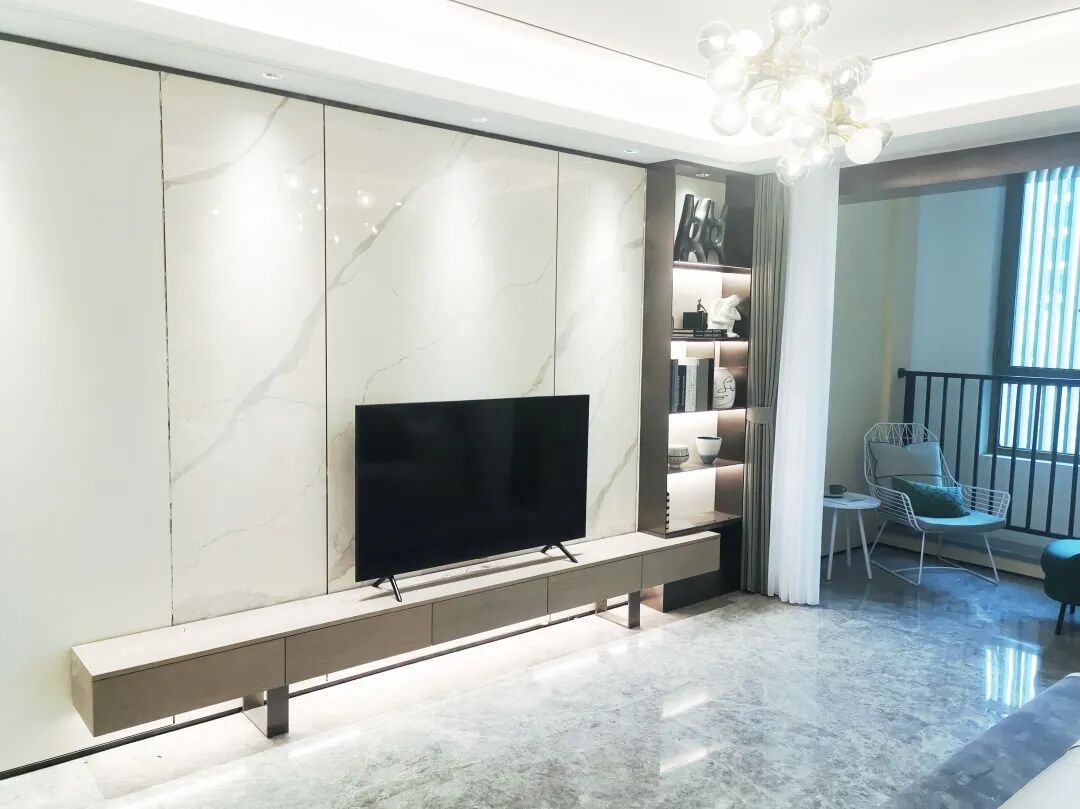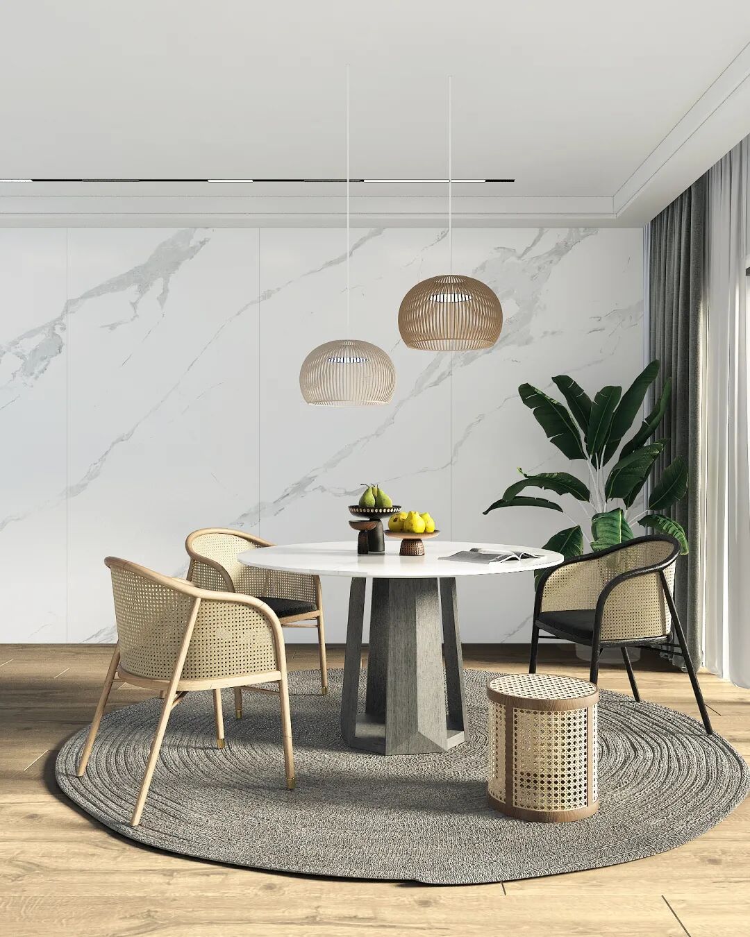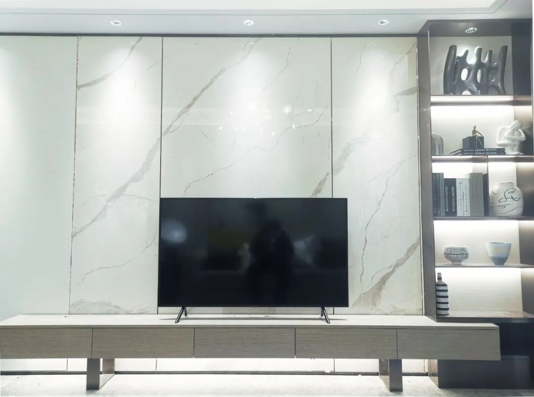 雪花白岩板特有的纹理和质感,赋予空间温度和生命,焕发出独一无二的光彩。
