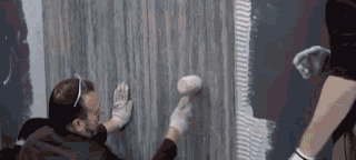 将岩板平整地铺贴在基层上,使用橡胶锤或塑胶平板将瓷岩板实铺平,便于岩板与基面之间满浆,排出气泡,以免产生空鼓现象。注意已经铺贴完成的岩板表面拍打时一定要控制好力度,拍打方向可以遵循从岩板中间往四周扩散进行。用橡胶锤或塑胶平板把砖面敲平整的同时,以靠尺测量,确保岩板铺贴水平。