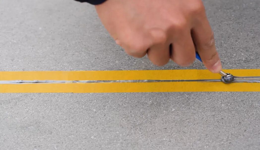 填缝24小时后,使用铲刀清除表面多余的美缝剂,非光面的岩板,先用美纹纸贴在板缝两边,沿着岩板缝注入美缝剂并填充饱满,使用压缝球压缝,随后撕掉美纹纸即可完成填缝。