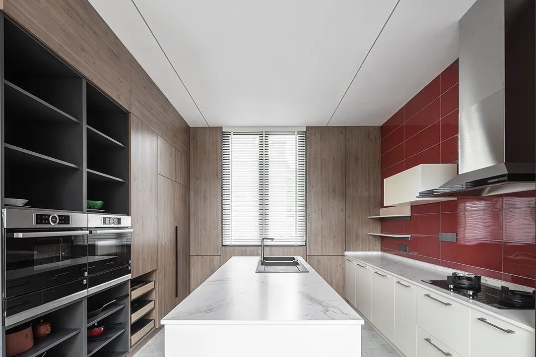 不同的颜色融合与碰撞,时尚更有张力,营造出空间的韵律。多元材质在综合艺术手法表现下更为丰盈,一种隐逸优雅的气质缓缓展现而出,身处其中,做饭也是一种享受。