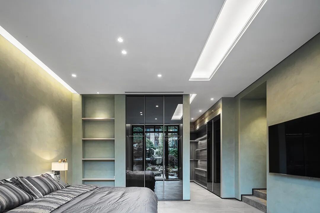卧室注重功能和空间的协调性,整个空间以黑白作为主,融合大量的高级木色,在光线的引入下,没有多余沉重的造型,让人全然放松。