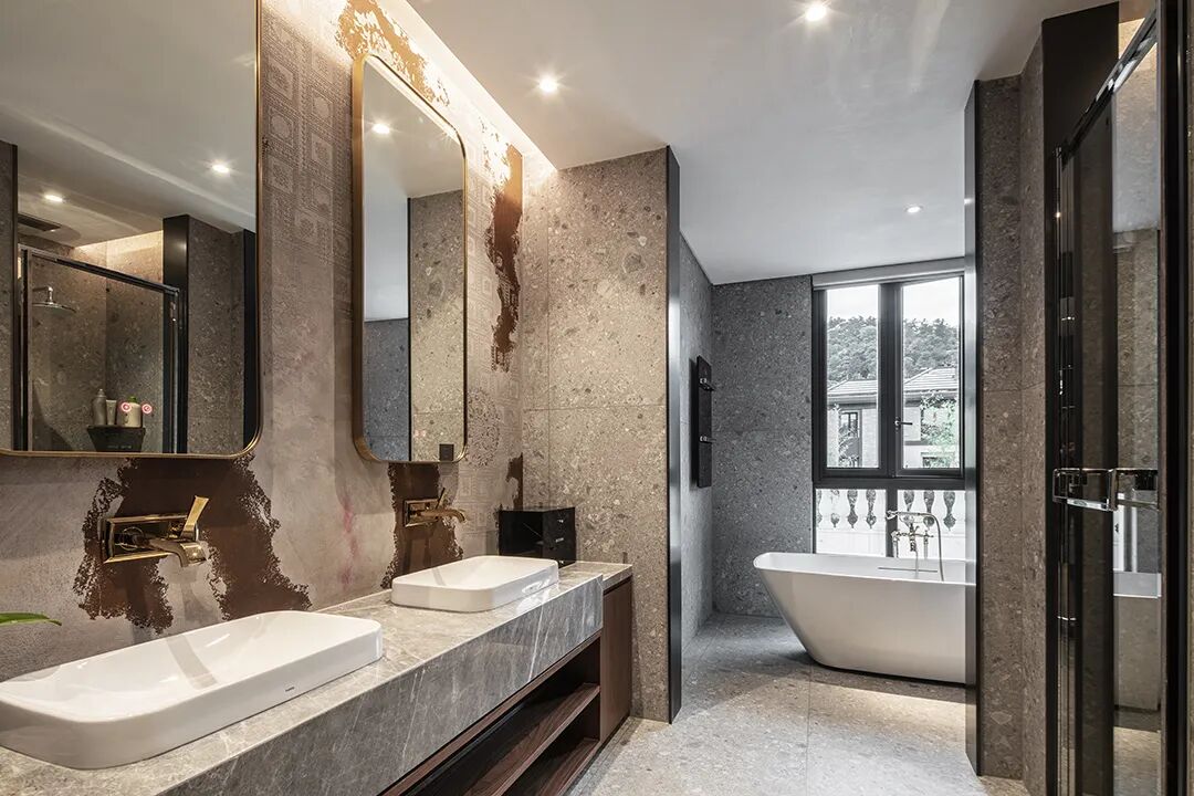 浴室用朴素的设计手法打造出自然而惬意的氛围,多种材质相映成趣,明亮的光线自由流淌,无形之间给空间增添高级感,传递着一种舒适时尚的生活方式。