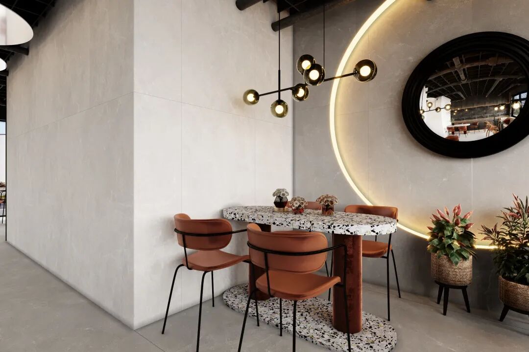 一个有温度的家居设计不仅仅与家具有关,还与颜色有关。在空间装饰铺贴时选择暖色系岩板,不仅有扩大视野的效果,仿佛还带着一抹太阳的余温,让整个环境更加温馨迷人。
