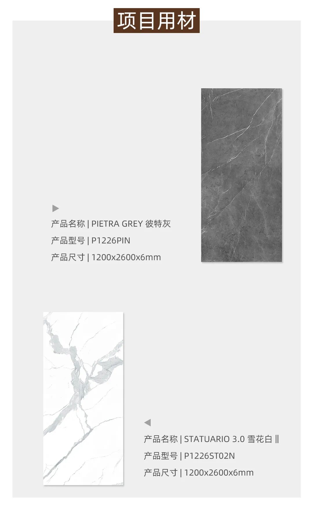 项目用材:PIETRA GREY 彼特灰系列、STATUARIO 3.0 雪花白系列