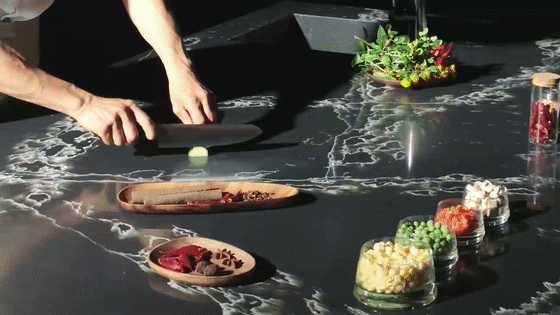 PROXIMA岩板一直践行绿色低碳的环保理念,其生产原料主要为天然矿物,经过高温烧制而成,不会释放任何有害物质,环保又时尚。