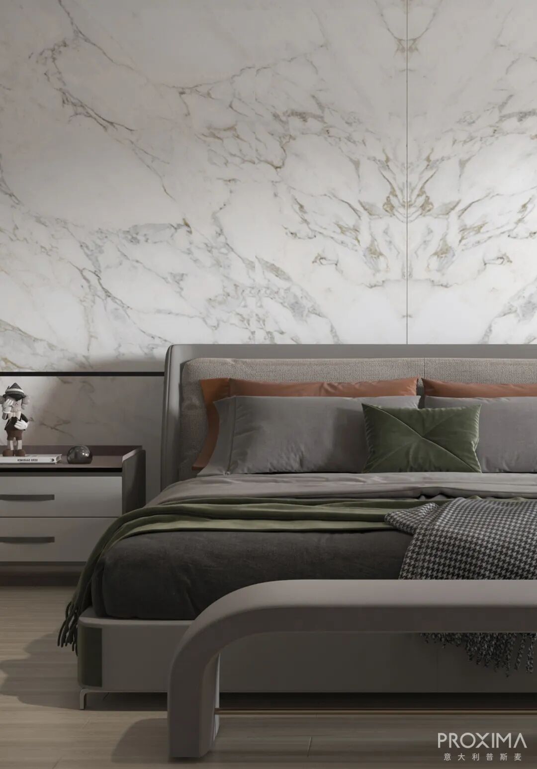 | 地面用材-PROXIMA木纹系列-欧橡 P2012EU02;墙面用材-PROXIMA岩板系列-芭蕾P1632BTAN、P1632BTBN