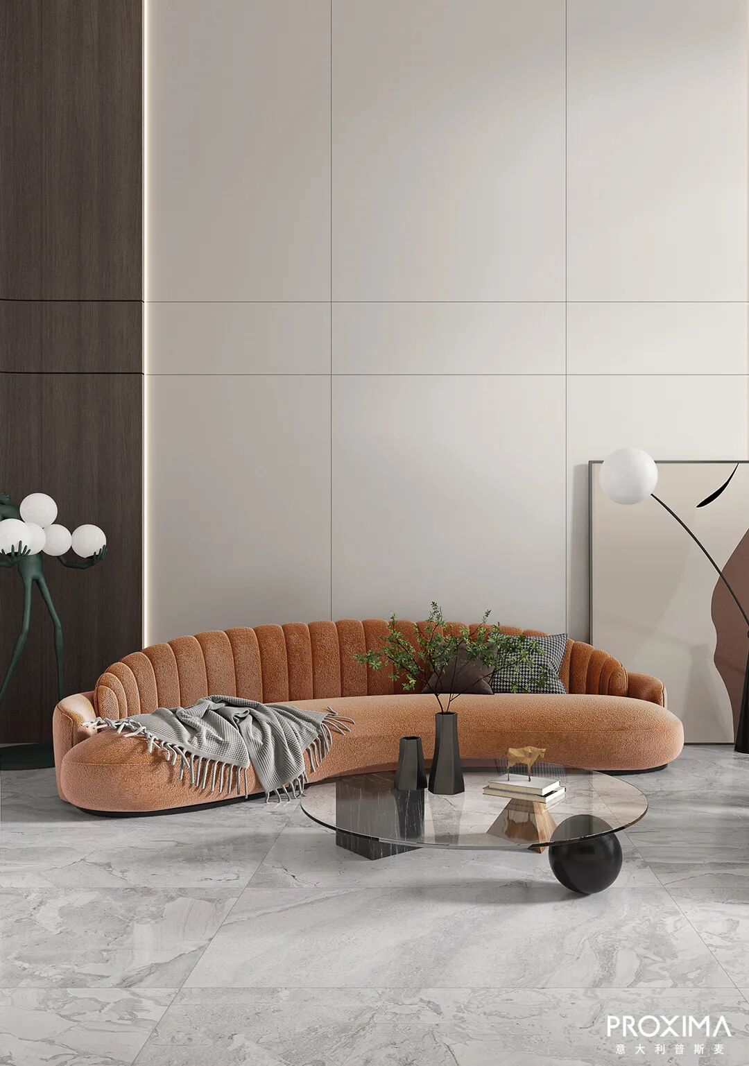 | 地面用材-PROXIMA大理石系列-圣天使堡 P9018SAH;墙面用材-PROXIMA岩板系列-丽莎白P1632LSP