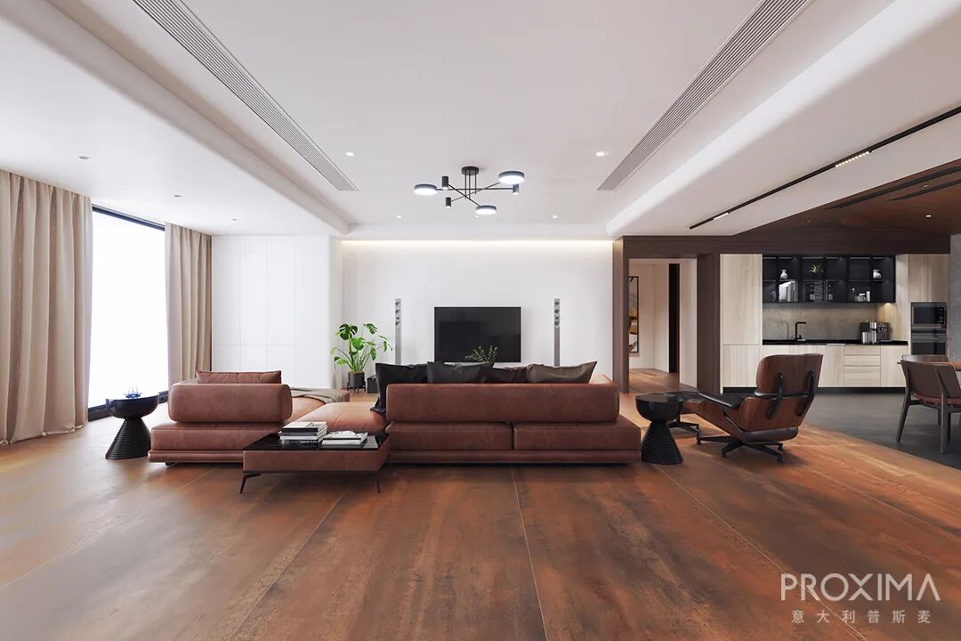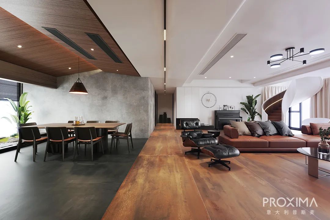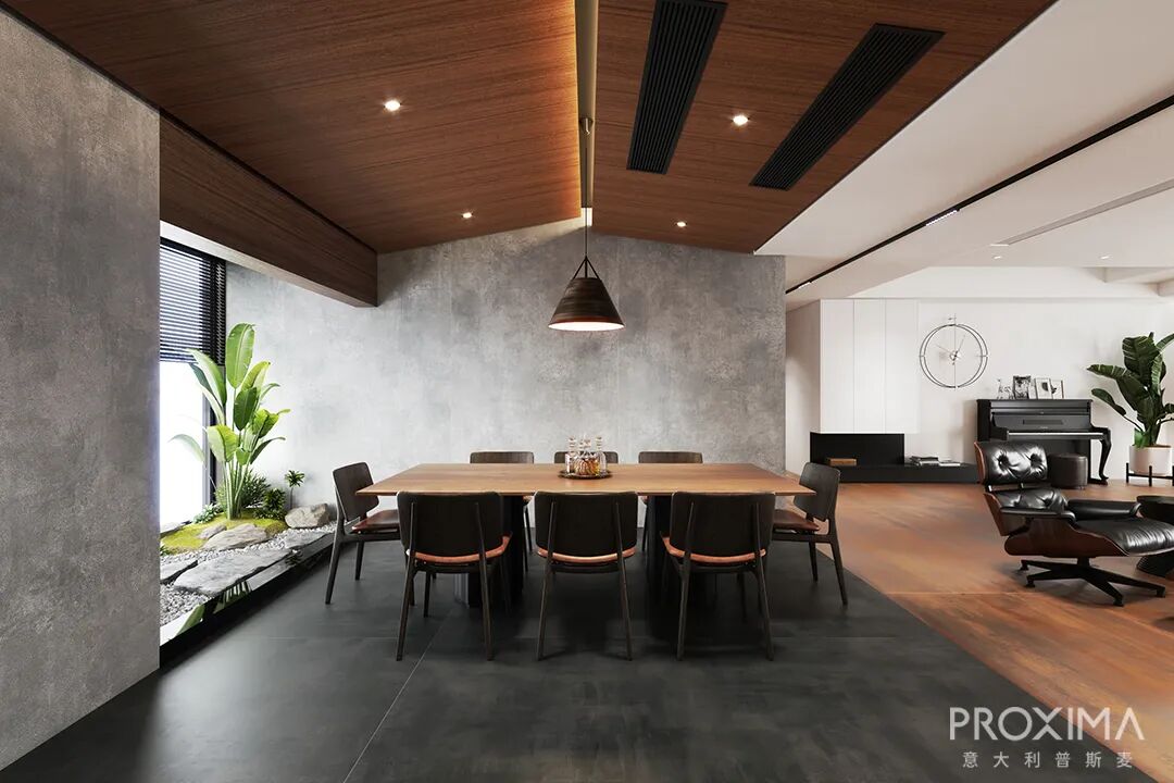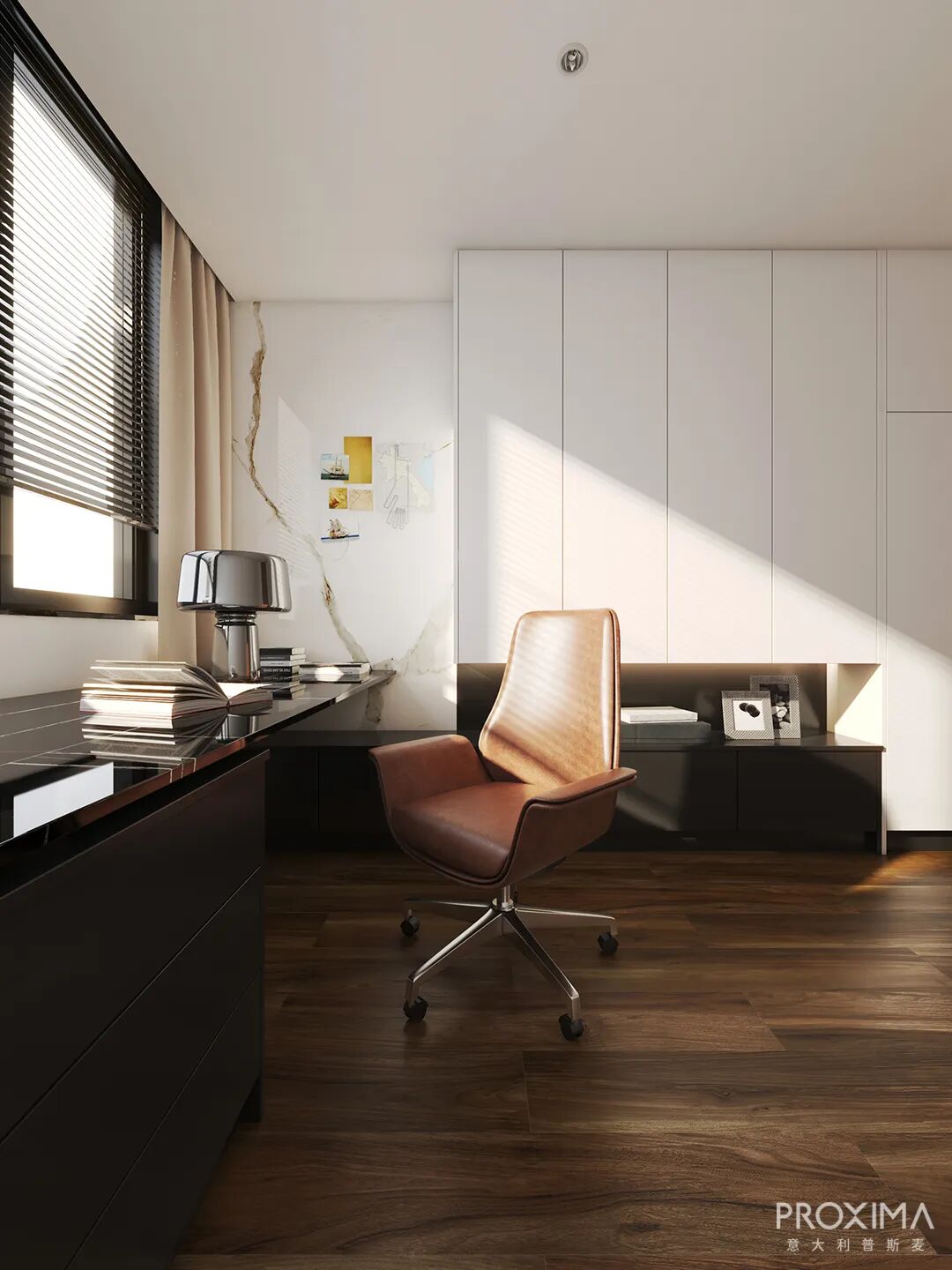 | 地面用材-PROXIMA木纹系列-巴里P212BR05;墙面用材-PROXIMA岩板系列-卡拉卡塔P1226CAP;桌面用材-PROXIMA岩板系列-阿尔卑斯黑P1227SBP