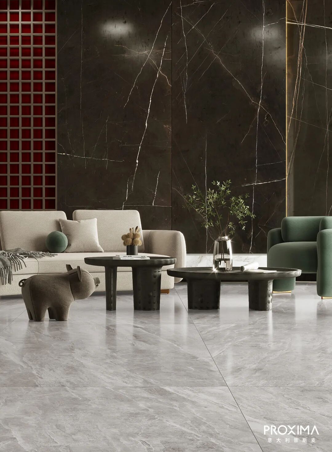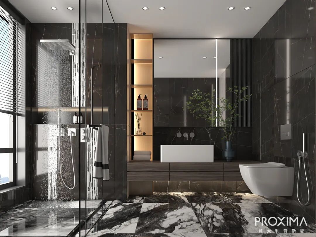 | 墙面用材-PROXIMA岩板系列-撒哈拉黑P1226SAP; 地面用材-PROXIMA大理石系列-泼墨山水P9018LE01P