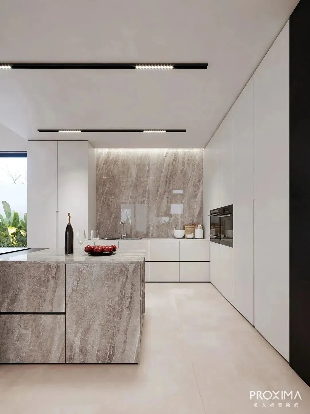 | 橱柜、墙面用材-PROXIMA岩板系列-米洛斯P1227SHP;地面用材-PROXIMA岩板系列-克雷玛P1228CC02N