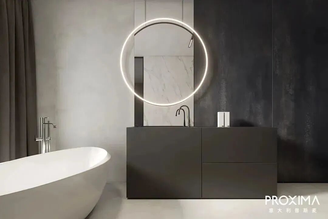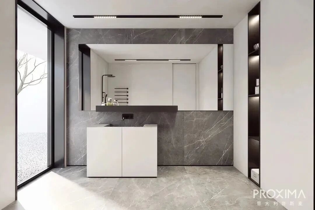 | 墙面用材-PROXIMA岩板系列-彼特灰P1227PIN;洗漱台用材-PROXIMA岩板系列-莱科P1228LC01N