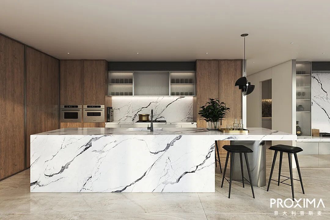 | 墙面用材-PROXIMA大理石系列-普洛西玛鎏金P6012PCP;橱柜用材-PROXIMA岩板系列-提香 P1227CP02N、缪斯P1632SSAN-12