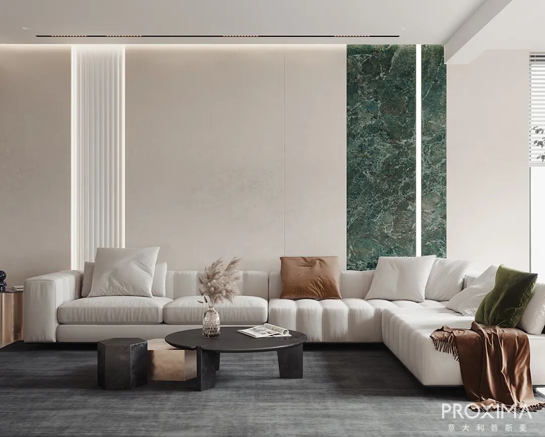 PROXIMA岩板,采用多重工艺,赋予表面自然温润的触感,用手轻轻抚磨,犹如指尖划过山间清泉,在自由呼吸之间,感受肌肤与自然的和谐融洽。
