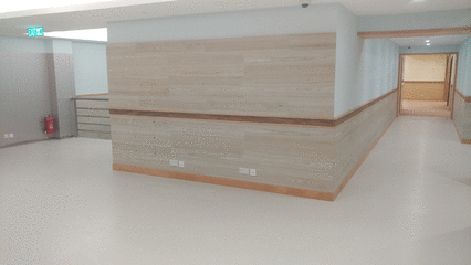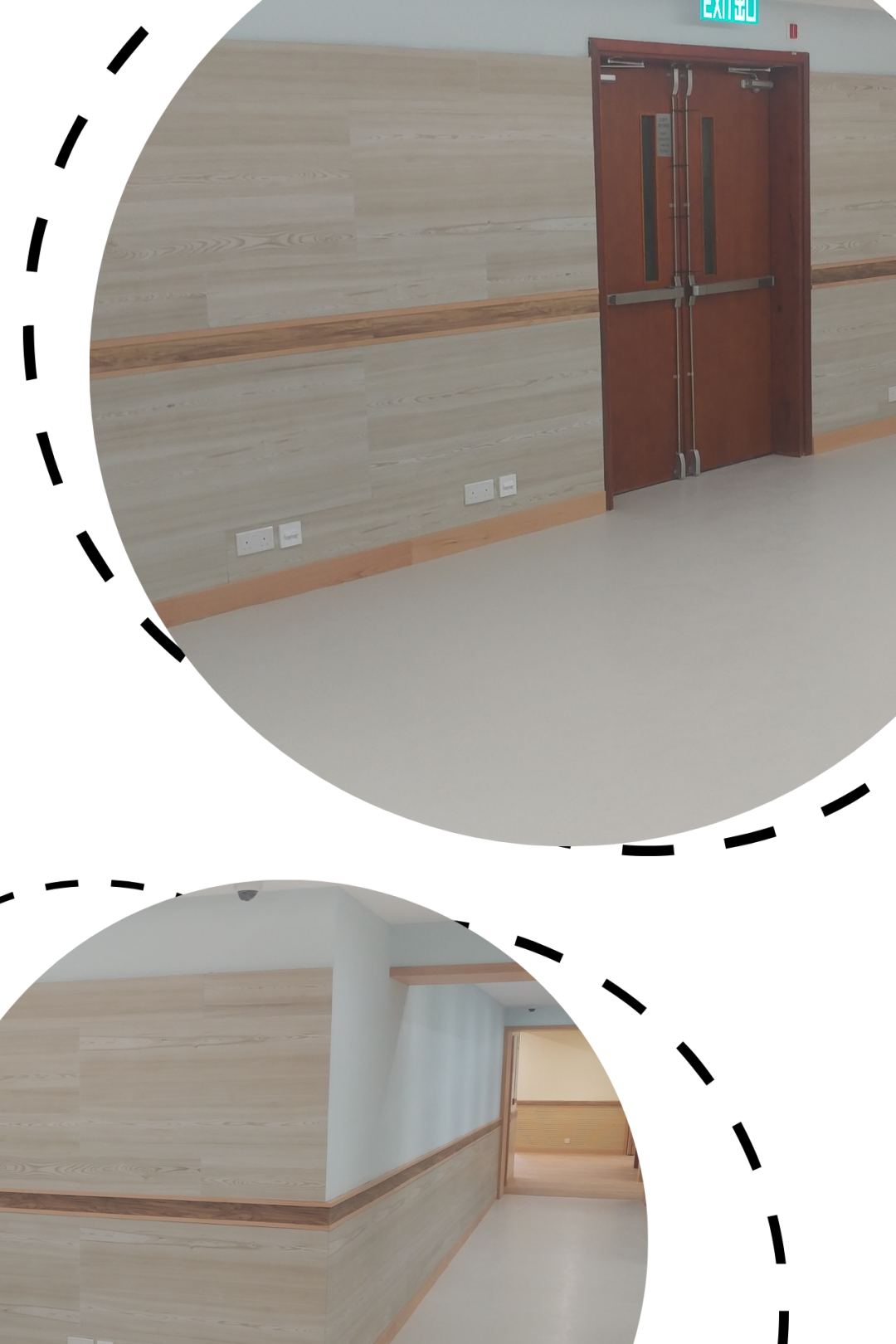 木纹砖的延伸感表现良好,搭配暖而明亮的地砖,让走廊的空间感更为宽阔。