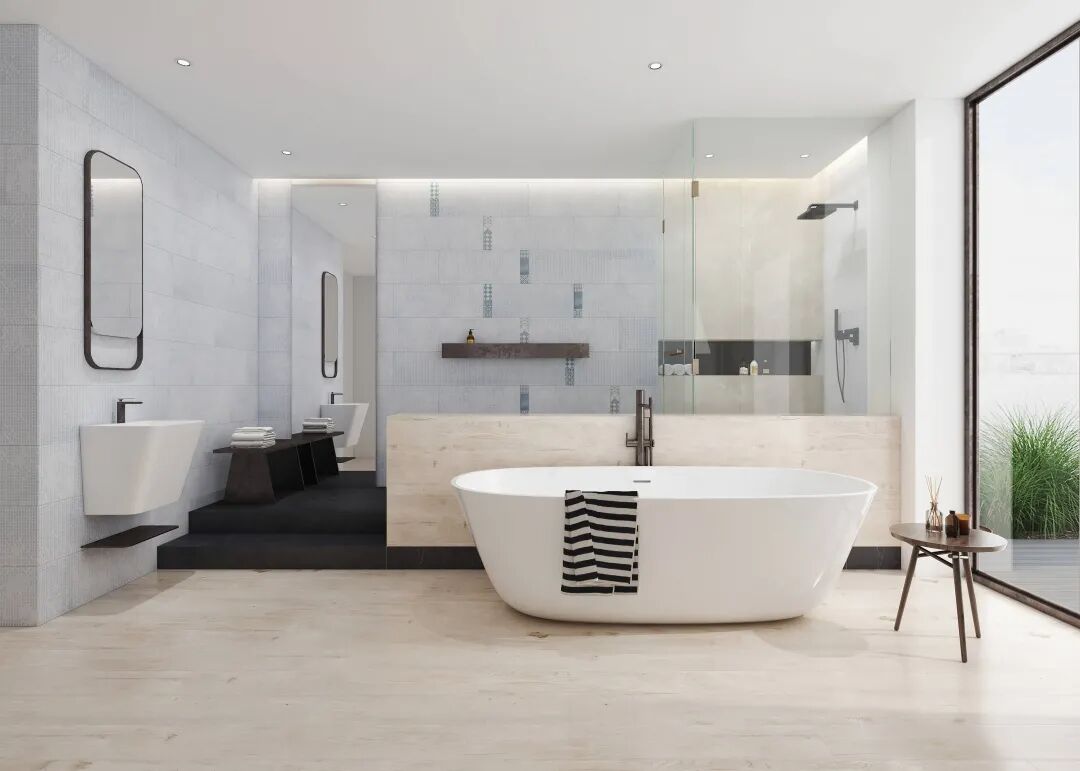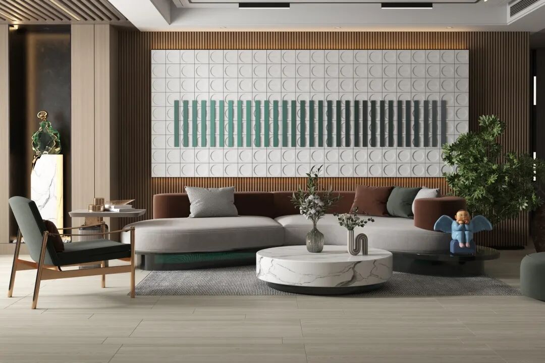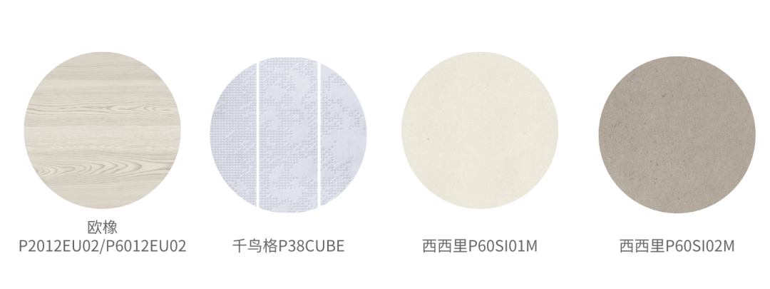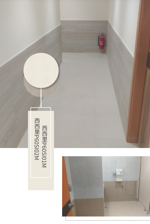应用产品:木纹系列欧橡P2012EU02 / P6012EU02、艺术瓷片系列千鸟格P38CUBE、仿古系列西西里P60SI01M / P60SI02M