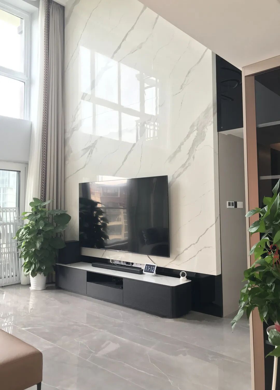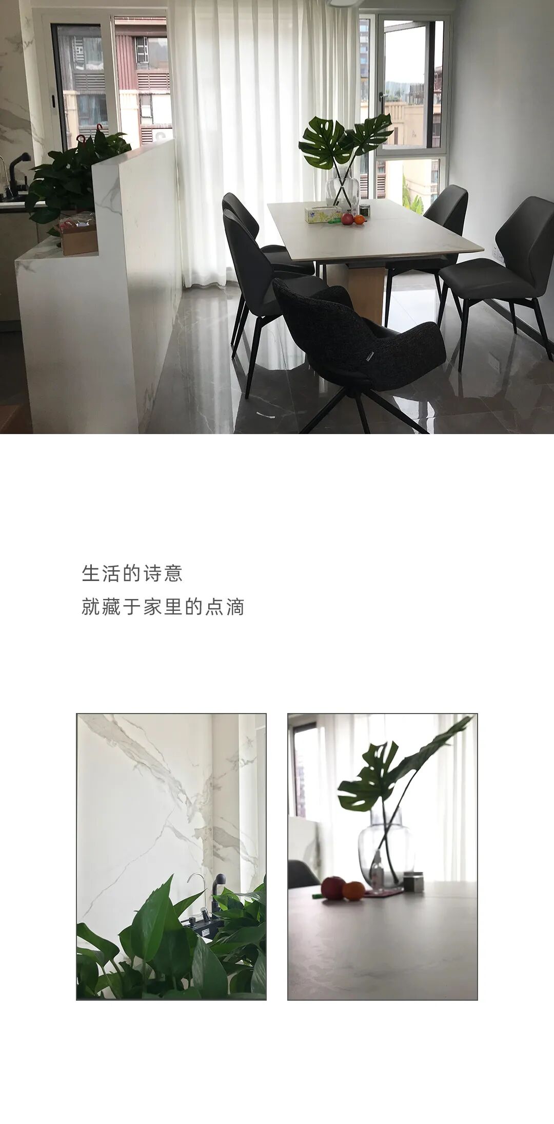 低调而时尚的岩板背景墙,如雪山连绵起伏的肌理在表面上若隐若现,在动静变化之间流露出极致的艺术之美,以一种优雅、简约的姿态吸引停驻者的目光。