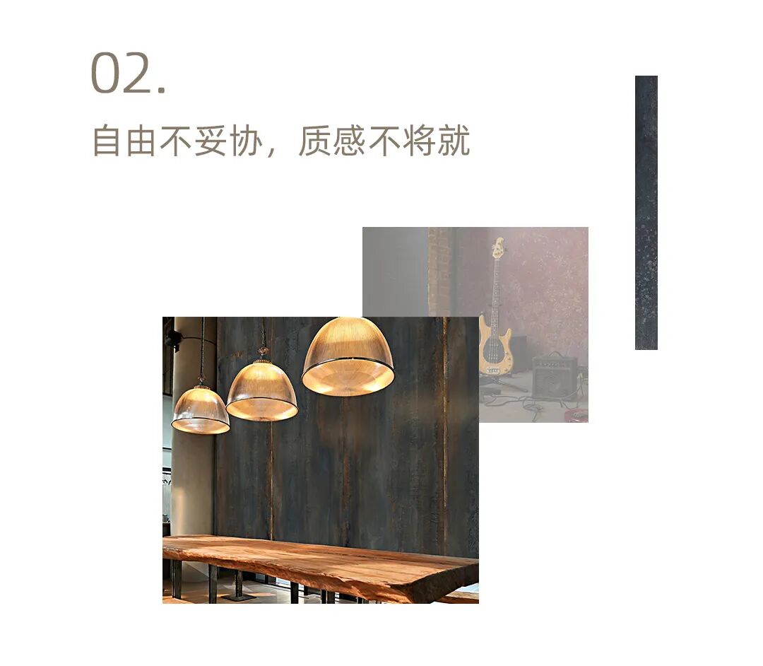 每个时代都需要摇滚精神。将装饰材料通过设计的手法,重新定义使用场所的精神,让我们所看到的不仅是居住空间,而是勇于改变生活的勇气。